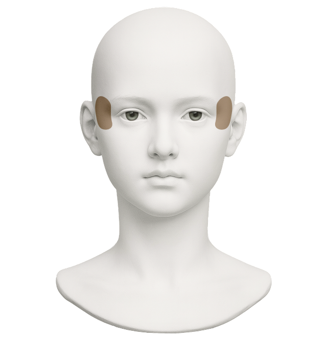 꺼진 관자에 볼륨을 더해 부드럽고 어려 보이는 인상을 연출합니다.